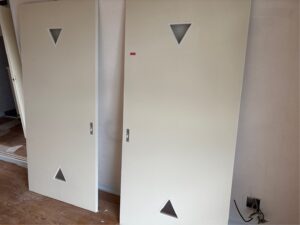 ドアの三角部分についても、形状に合わせて細部までしっかり塗装しています。